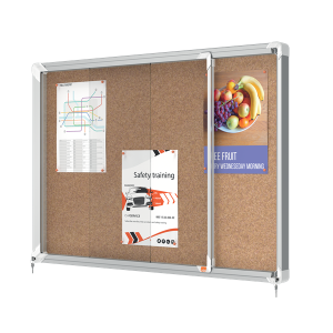 Vitrina con cerradura para interiores con superficie de blanca magnética y puerta de seguridad abatible de cristal de 4 mm de grosor. Ideal para mostrar los documentos con seguridad optimizada para diversas hojas A4. Bisagras laterales. Se suministra con los anclajes a la pared y dos llaves.
