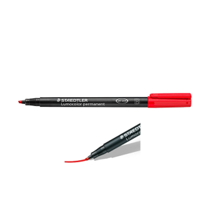 Rotulador permanente para retroproyección y sobre superficies como plástico, cristal, metal, textil, etc. Tinta a base de alcohol resistente al agua y luz. Cuerpo de polipropileno. Punta superfina ancho 0,4 mm.